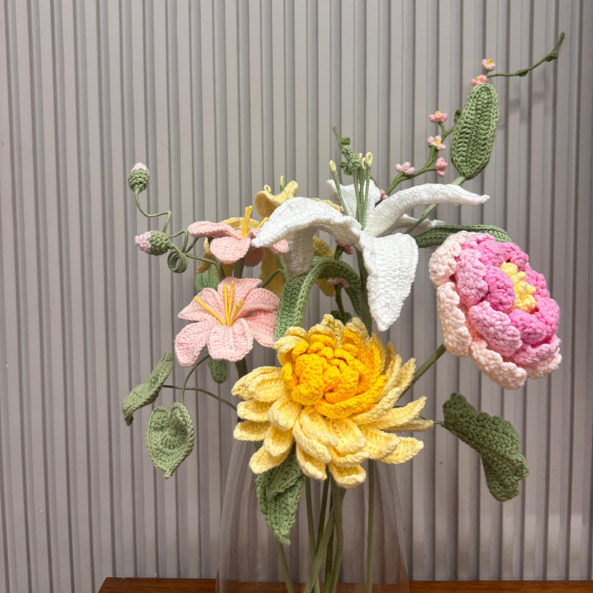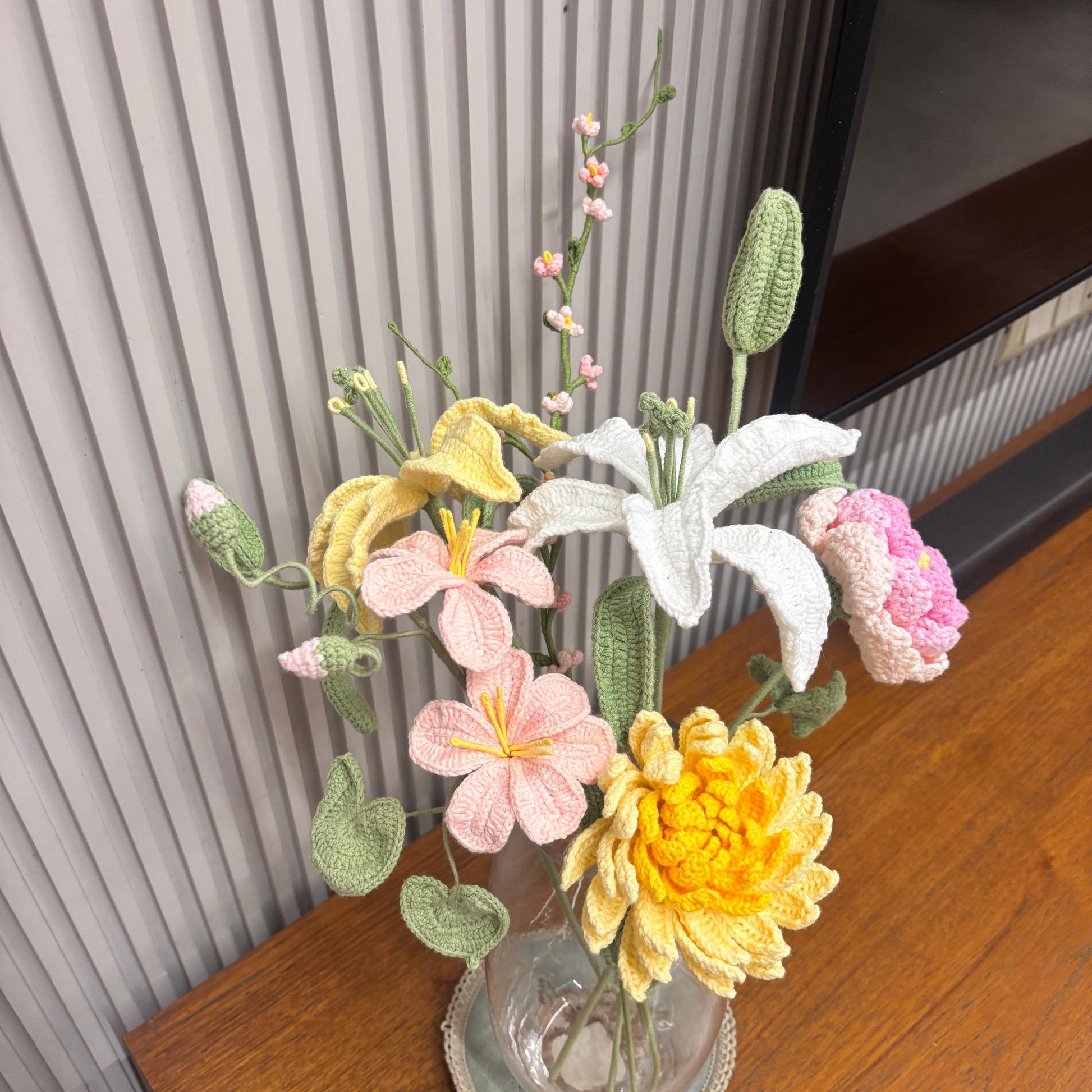 This beautiful Crochet flower set in yellow, pinks and whites is a stunning addition to your flower collection. Handmade with care, this set is meticulously crafted with intricate details that make it stand out.
