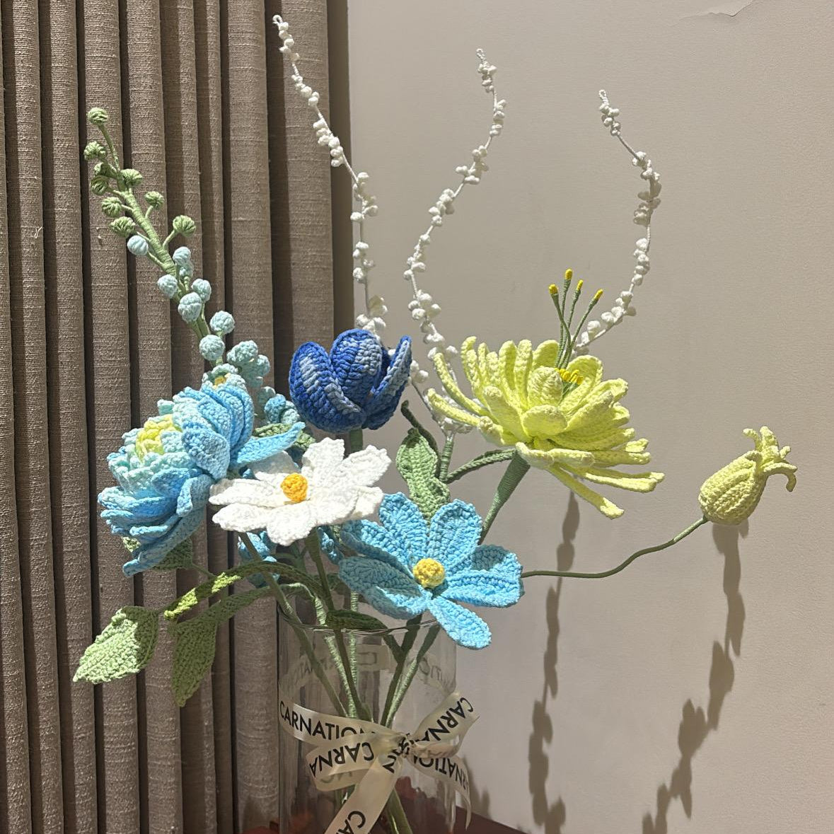 This beautiful Crochet flower set in ice blue and neon green is a stunning addition to your flower collection. Handmade with care, this set is meticulously crafted with intricate details that make it stand out.