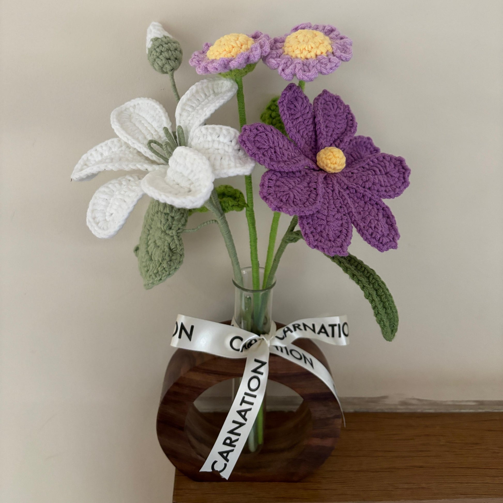 Experience the delicate charm of the Aura Set from Carnation, featuring purple & white flowers with bud detailing, all elegantly displayed in a test tube vase.
